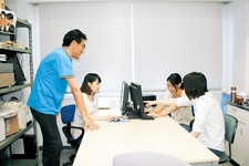 知的障害児・者の教育を中心に、福祉、就労、余暇など生活全般における支援について学ぶ科目です。写真は富山大学で働いている知的障害者に、働く意義や喜びなどについて学生がインタビューをしているところです。