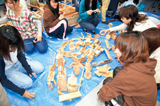 ゼミ室で、それぞれが、次回のゼミで発表する教科書題材を実際に制作したり、自分のレポートをパソコンでまとめたりしています。この部屋には、図画工作で必要な材料や用具が収納してあり、いつでも図画工作の教材研究ができるようになっています。本ゼミでは、3 年で小学校で使用される教科書題材を制作しながら、指導と評価についてのレポートをまとめ、図画工作や美術の教育理論について学んだ上で、4 年からの卒業研究に向けての準備をしていきます。